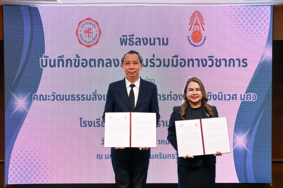 วันที่ 13 มกราคม 2569 นางสาววัชนี ชูสุวรรณ ผู้อำนวยการโรงเรียนวัดโสธรวรารามวรวิหาร พร้อมด้วย นางสาวชะเอม มีเชาว์ รองผู้อำนวยการฝ่ายบริหารวิชาการ และนางสาววราภรณ์ เกิดผลมาก หัวหน้ากิจกรรมแนะแนว เข้าร่วมพิธีลงนาม บันทึกข้อตกลงความร่วมมือทางวิชาการ ระหว่างคณะวัฒนธรรมสิ่งแวดล้อมและการท่องเที่ยวเชิงนิเวศ มหาวิทยาลัยศรีนครินทรวิโรฒ และโรงเรียนวัดโสธรวรารามวรวิหาร ณ มหาวิทยาลัยศรีนครินทรวิโรฒ