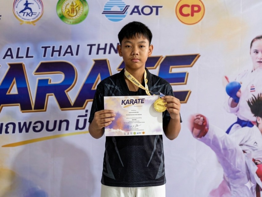 วันที่ 4 – 6 เมษายน 2569 นางสาววัชนี ชูสุวรรณ ผู้อำนวยการโรงเรียนวัดโสธรวรารามวรวิหาร แสดงความยินดีกับ ด.ช. ธนวัฒน์ เพชรสุวรรณ นักเรียนชั้น ม.1/13 เข้าร่วมการแข่งขันคาราเต้โด ALL THAILAND KARATE CHAMPIONSHIP 2026 การแข่งขันกีฬาคาราเต้ชิงชนะเลิศแห่งประเทศไทย ครั้งที่ 57 ประจำปี 2569 ประเภทต่อสู้บุคคลชายรุ่น u14 อายุไม่เกิน 13 ปี น้ำหนัก +50 กิโลกรัม ณ อาคารจักรพันธ์เพ็ญศิริ มหาวิทยาลัยเกษตรศาสตร์ได้รับรางวัลเหรียญเงิน